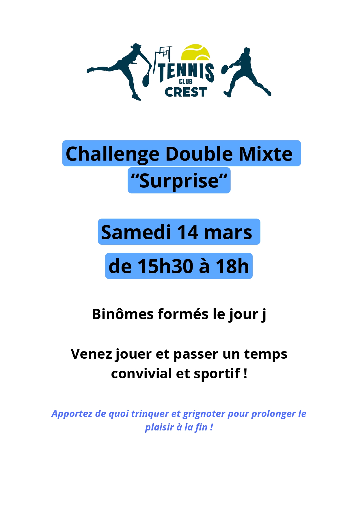au 06.15.99.07.51 ou tennisclubcrest@free.fr